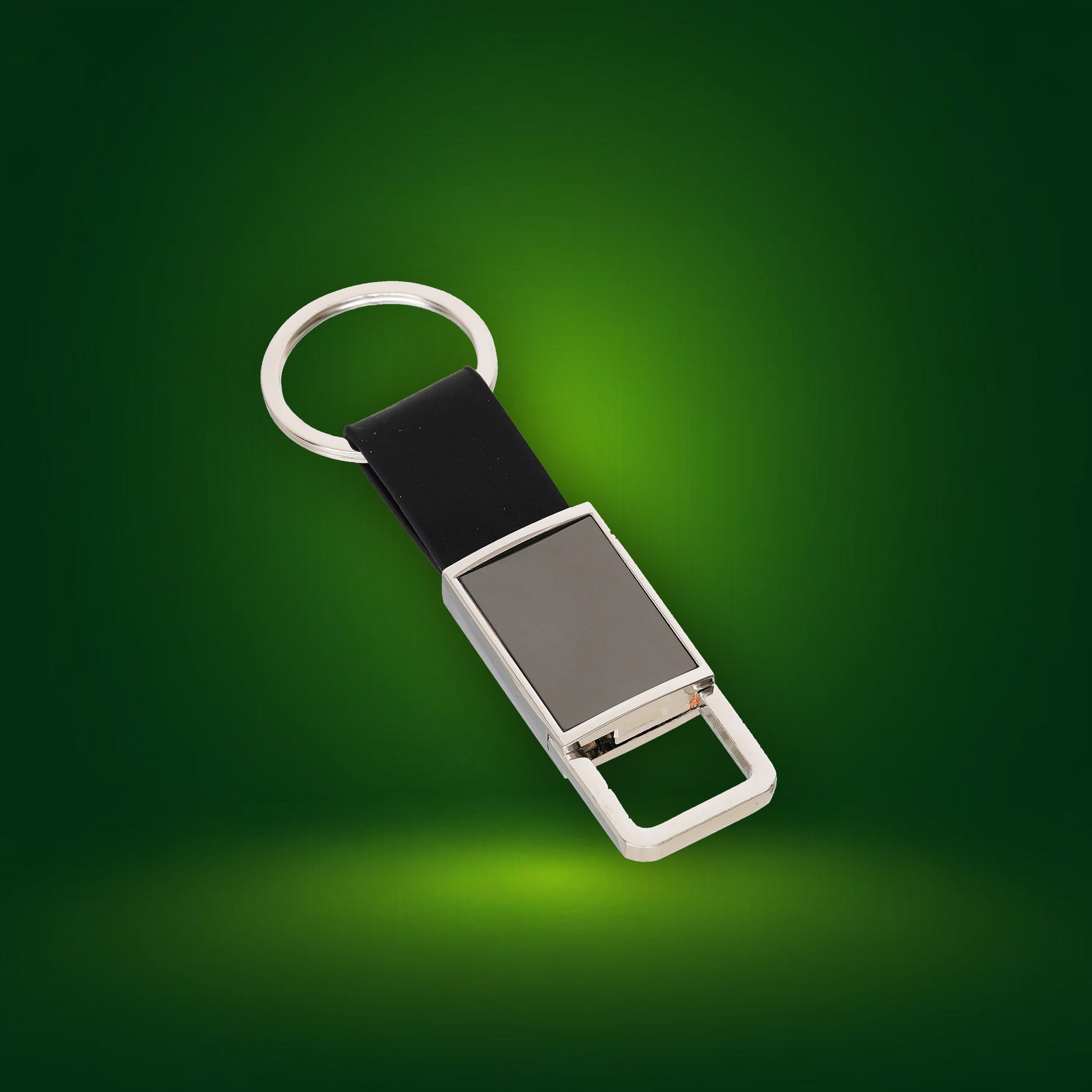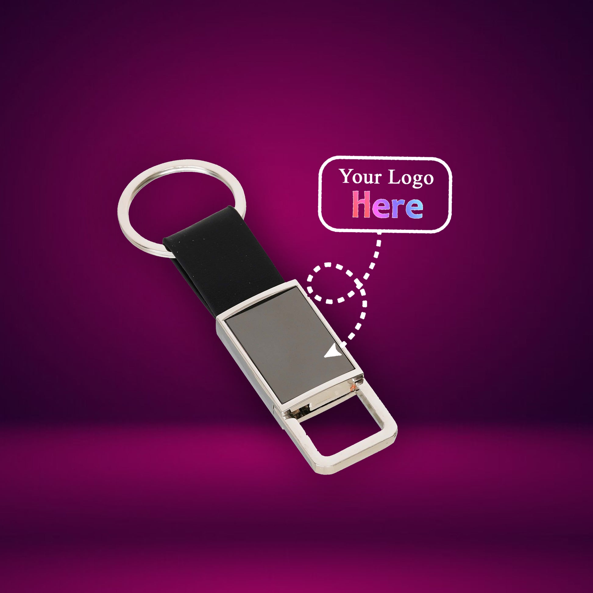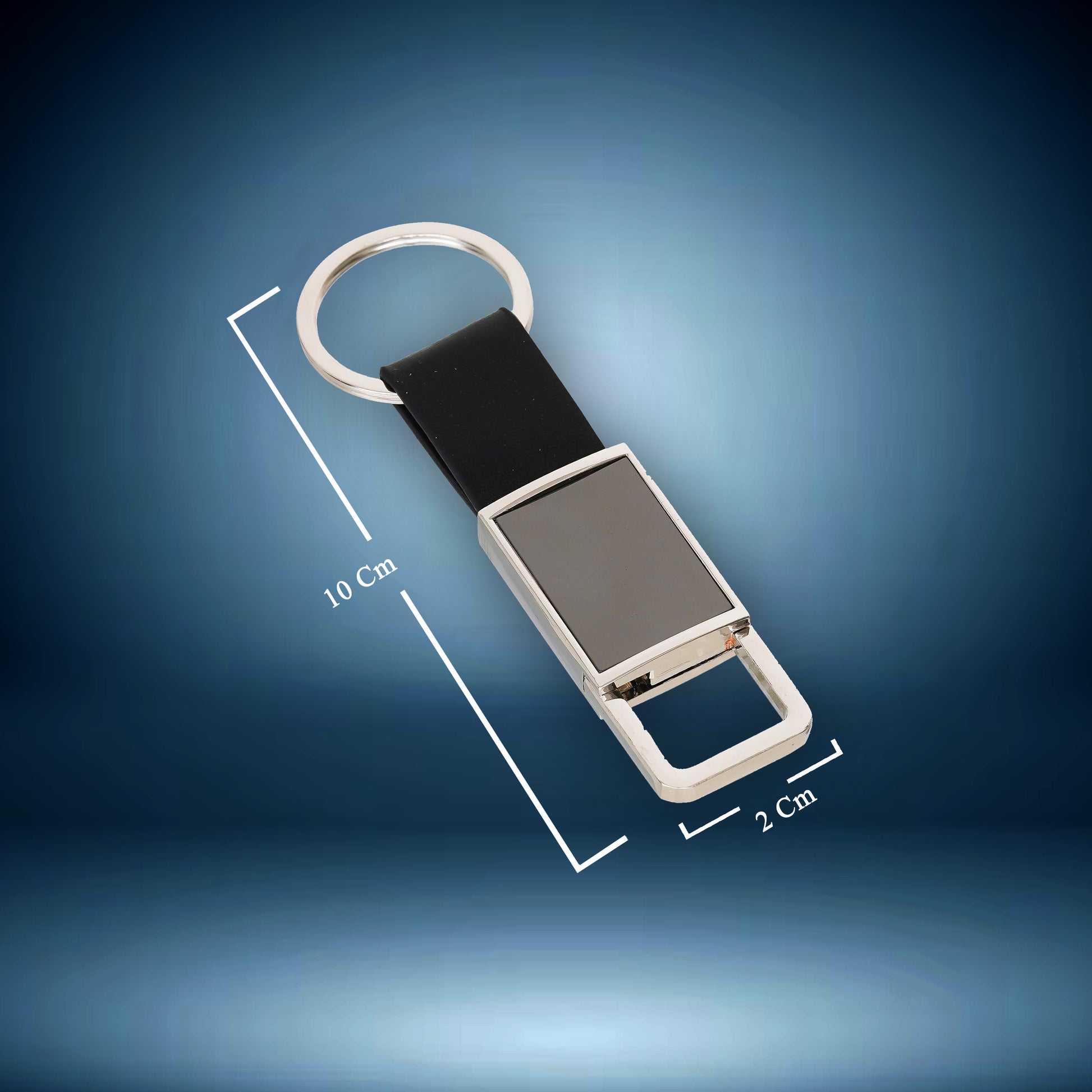 A modern and professional metal keychain featuring a clean rectangular body and durable synthetic strap. Designed for daily use and gifting, it’s perfect for branding or personal use.