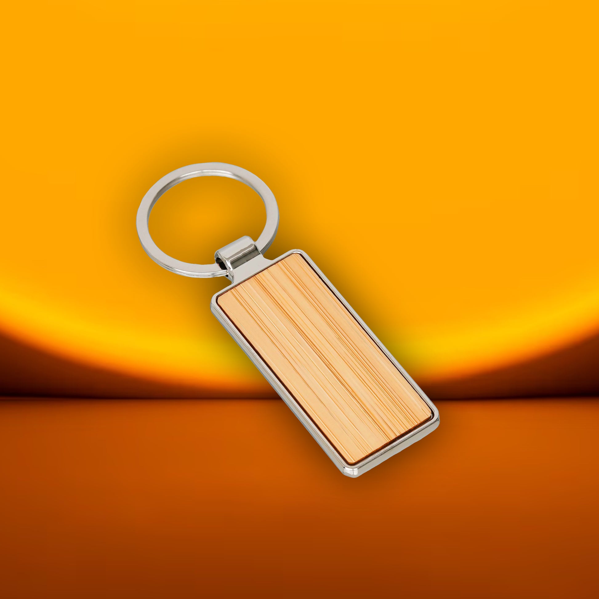 Rectangular Metal-Wood Keychain – Customizable with Laser Engraving