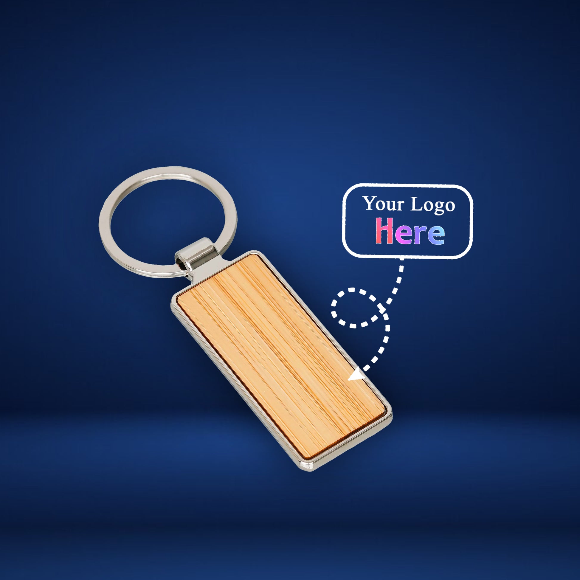 Blending natural elegance with lasting strength, our Rectangular Metal-Wood Keychain is the perfect choice for stylish personalization. Featuring a sleek metal frame paired with a warm wood-finish inset, this keychain offers a premium branding surface ideal for laser engraving.